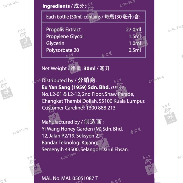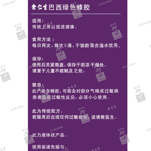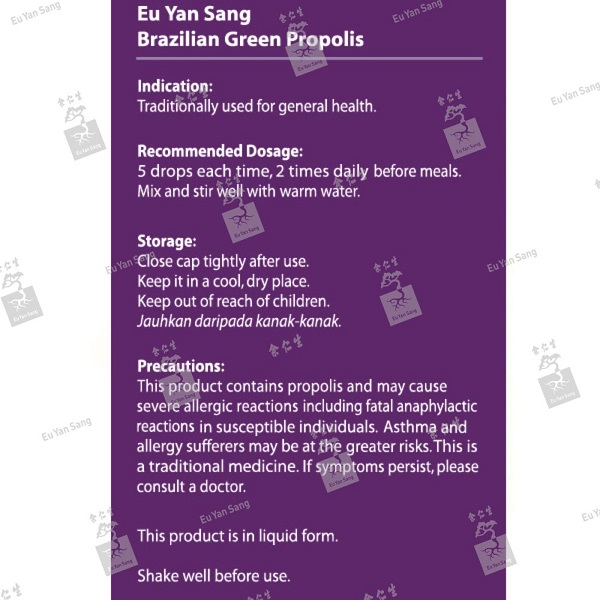 Preacautions: This product contains propolis and may cause severe allergic reactions including fatal anaphylactic reactions in susceptible individuals. Asthma and allergy sufferers may be at greater risks. This is a traditional medicine. If symptoms persist, please consult a doctor.